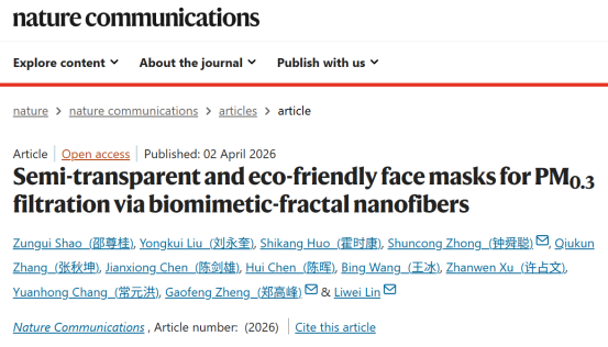 近日,我院钟舜聪研究员团队联合加州大学伯克利分校机械工程系等单位在国际知名期刊Nature Communications发表了最新研究成果“Semi-transparent and eco-friendly face masks for PM0.3 filtration via biomimetic-fractal nanofibers”,创新性地揭示了荷电流体界面波动的偶极诱导各向异性拉伸-撕裂机制,从而实现30纳米仿生分形纤维的环保化按需制造及超细颗粒物高效过滤应用,为微纳功能器件可控成型及优化制造提供绿色技术范式。我院青年教师邵尊桂副研究员是该研究的第一作者,2025级硕士生刘永奎是该研究的学生第一作者,钟舜聪研究员、厦门大学萨本栋微米纳米科学技术研究院郑高峰教授、加州大学伯克利分校机械工程系杰出教授/传感器与执行器研究中心主任林立伟教授是该研究的共同通讯作者。
