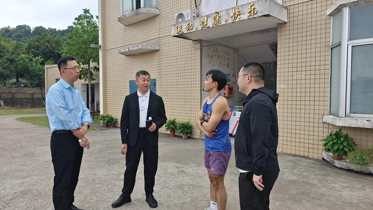 在第54届学校田径运动会即将拉开帷幕之际,11月7日下午,我院1989级院友张彦君学长、2002级院友赵绍融学长一行,在学院党委副书记谢武老师、学院团委副书记李辉容老师的陪同下,专程前往学校田径场,亲切看望正在紧张备战的运动员们,为他们加油鼓劲。