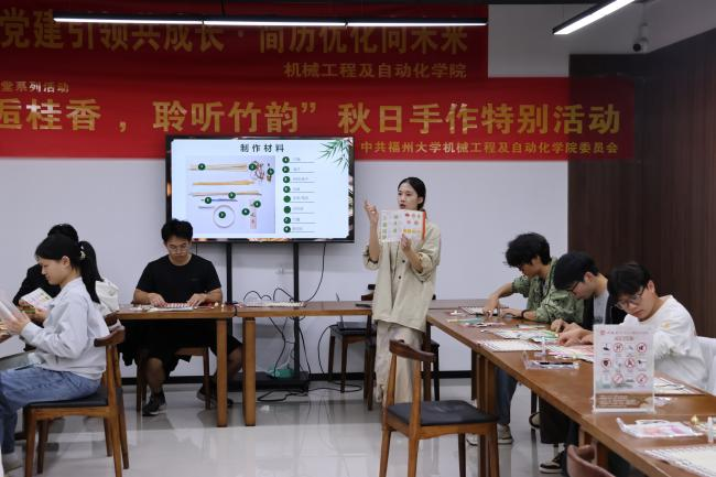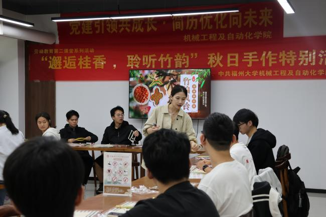 团委学生会及研究生会于6号楼一站式同观书院成功举办了第一次骨干培训班暨劳动教育第二课堂。30位学院团委、学生会及研究生会学生骨干在桂花与竹篾的香气里,完成了一次“有味道、有声响”的劳动实践课堂。