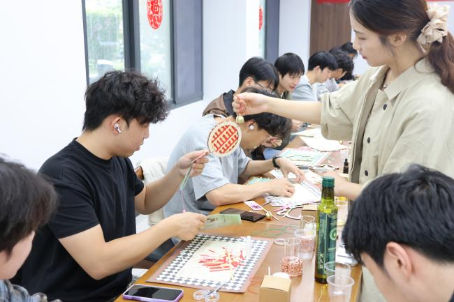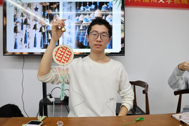 一小时后,30位同学悉数“交卷”——原本散落的竹篾与铜铃,已化作一串串造型别致、声韵清脆的竹编风铃,在指尖下摇曳生姿,非遗技艺于此刻被每个人成功“解锁”。