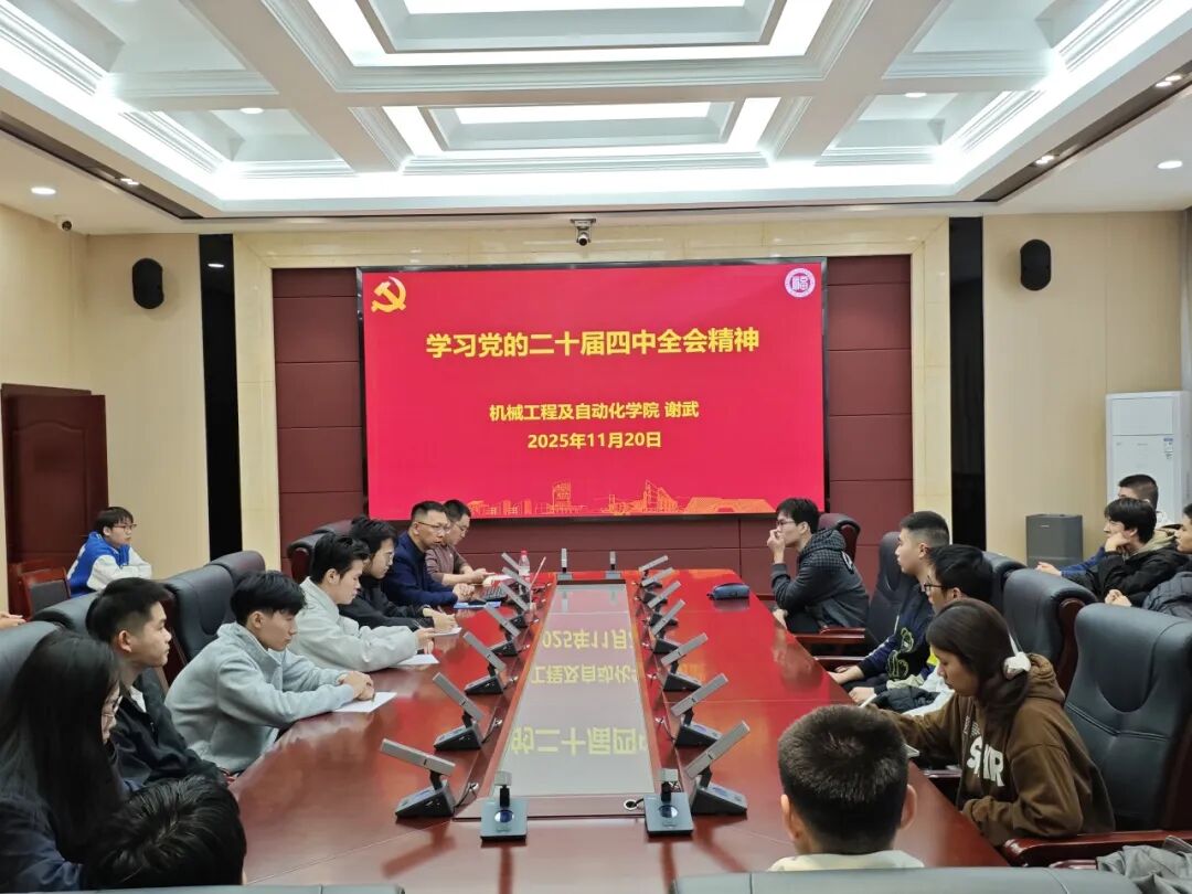 团委学生会在机械楼南401举行党的二十届四中全会精神学习专题党课,学院党委副书记兼纪委书记谢武讲授党课,学院团委副书记李辉容老师及学生骨干共同参会学习。