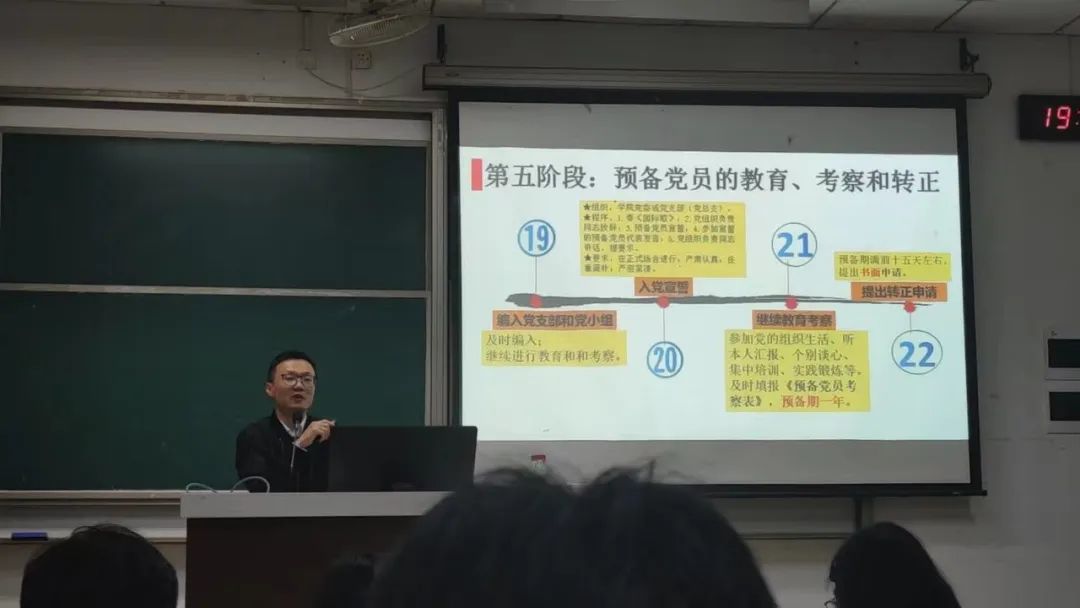 发展党员工作实务相关知识。他强调,发展党员要把政治标准放在首位,各党支部书记应当根据“控制总量、优化结构、提高质量、发挥作用”的总要求,坚持入党自愿和个别吸收的原则,成熟一个,发展一个。并讲述了发展党员五个阶段的重点工作要求。