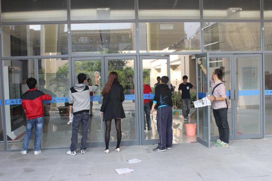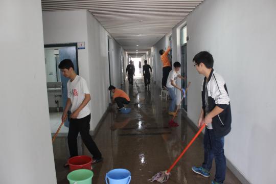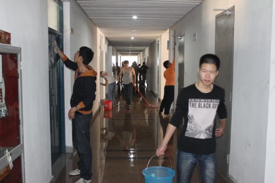 2011级学生在辅导员林成金老师和班级主要学生干部的组织下齐聚机械楼和车辆实验室,对100多个房间的门窗、过道走廊、卫生间和内外围花圃等开展卫生大扫除活动。8个班级共324名学生群策群力,共同为学院楼的美丽增添了一份光彩。