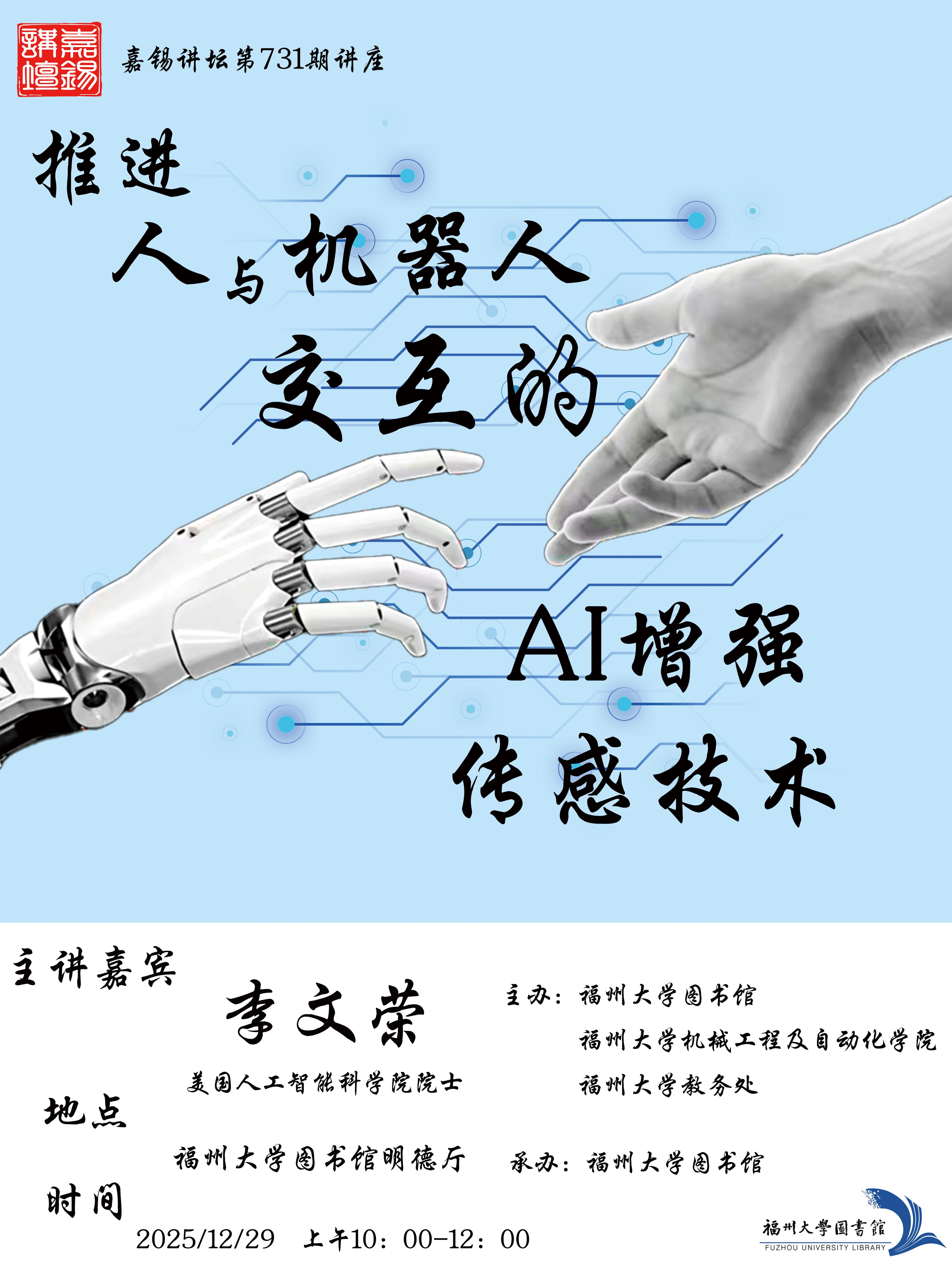 国产成人 嘉锡讲坛731期-推进人与机器人交互的AI增强传感技术